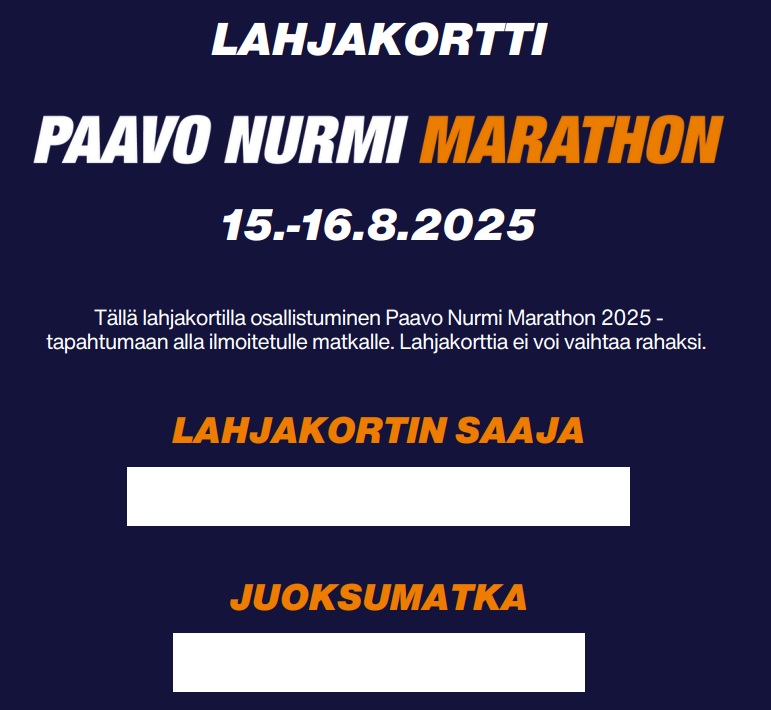 Lahjakortin voi ostaa mihin tahansa Juoksuaika-tapahtumaan sekä mille tahansa matkalle!